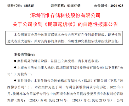 海外电子商情9日讯 4月9日,深圳佰维存储科技股份有限公司(以下简称:佰维存储)发布自觉性流露公告,称公司于近日收到江苏省南京市中级东说念主民法院投递的两起《民事告状状》。原告埃姆梯尔存储技能(深圳)有限公司(以下简称:埃姆梯尔)指控佰维存储侵害其发明专利权,每个案件目的补偿经济亏欠及合理开支暂计东说念主民币2500万元,统共5000万元。当今法院已立案受理,尚未开庭。