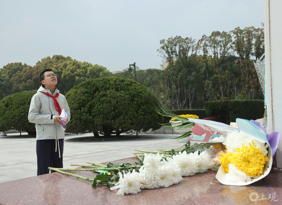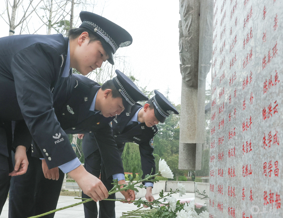 上海市公安局宝山分局友谊路派出所民警怀着对翻新先烈的精好意思敬意与追想念之情,向翻新义士驰念碑敬献鲜花。