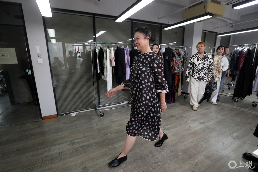 姜君(中)恭候试衣。