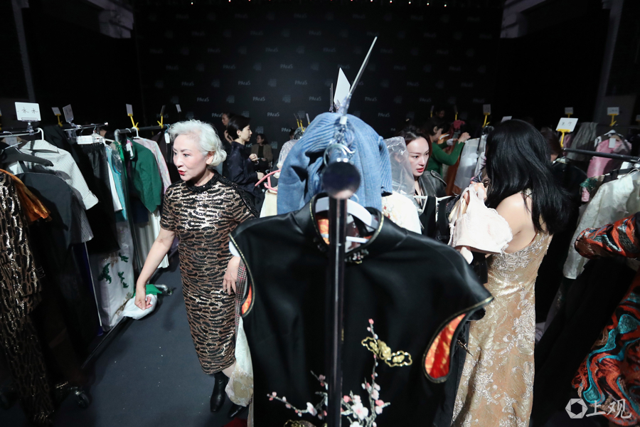 恭候上场的银发模特。